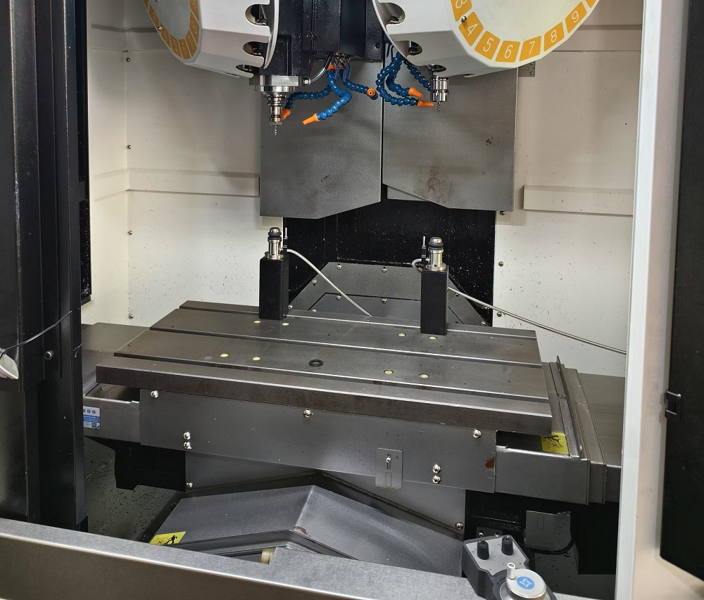 對(duì)于雙主軸加工中心,還需特別注意:分別測(cè)量?jī)蓚€(gè)主軸區(qū)域的水平度,確保兩主軸區(qū)域的水平度一致,檢查兩主軸軸線與工作臺(tái)的平行度。